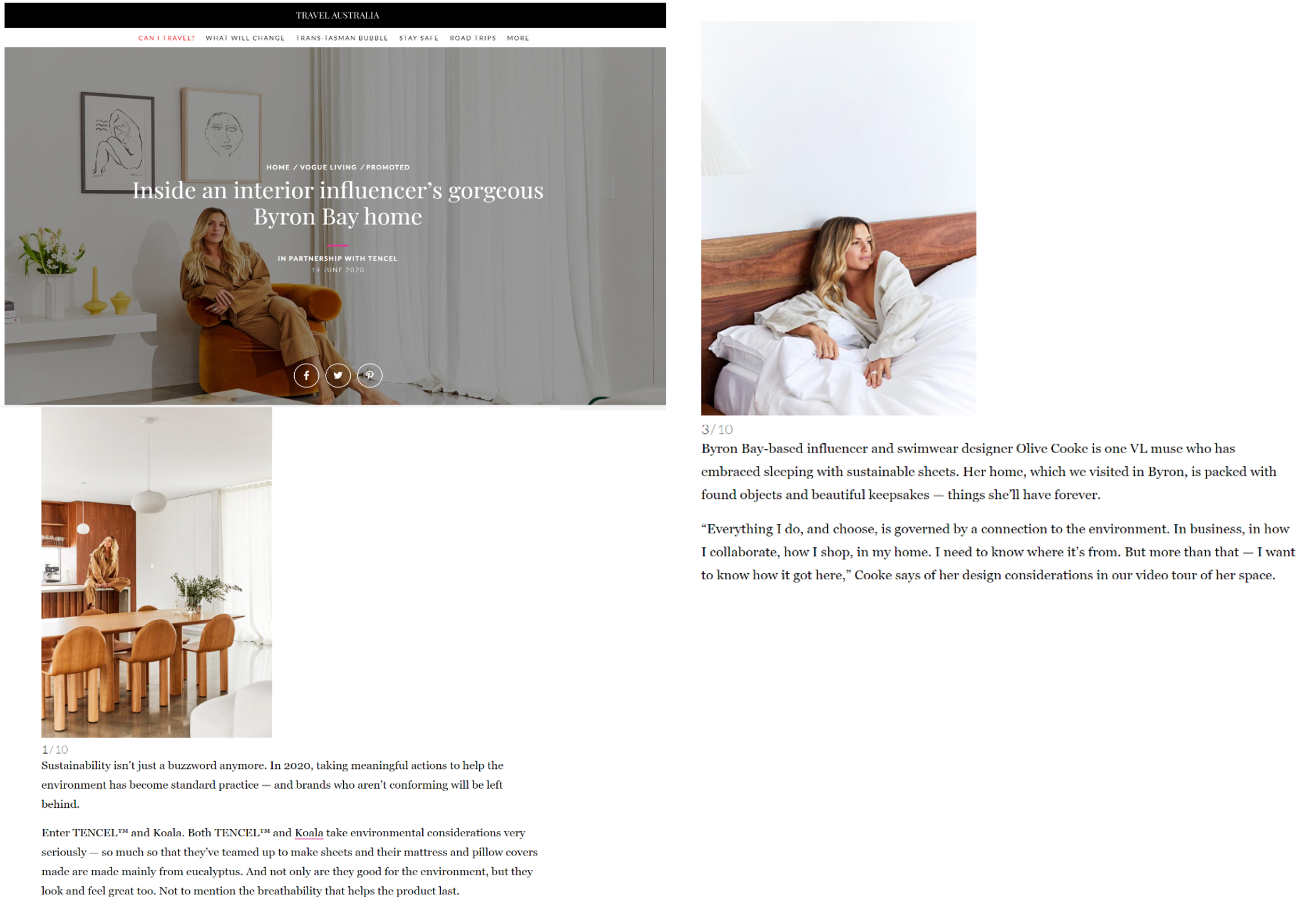 #FeelsSoRight campaign, Vogue Living X TENCEL™️ X Koala, Australia